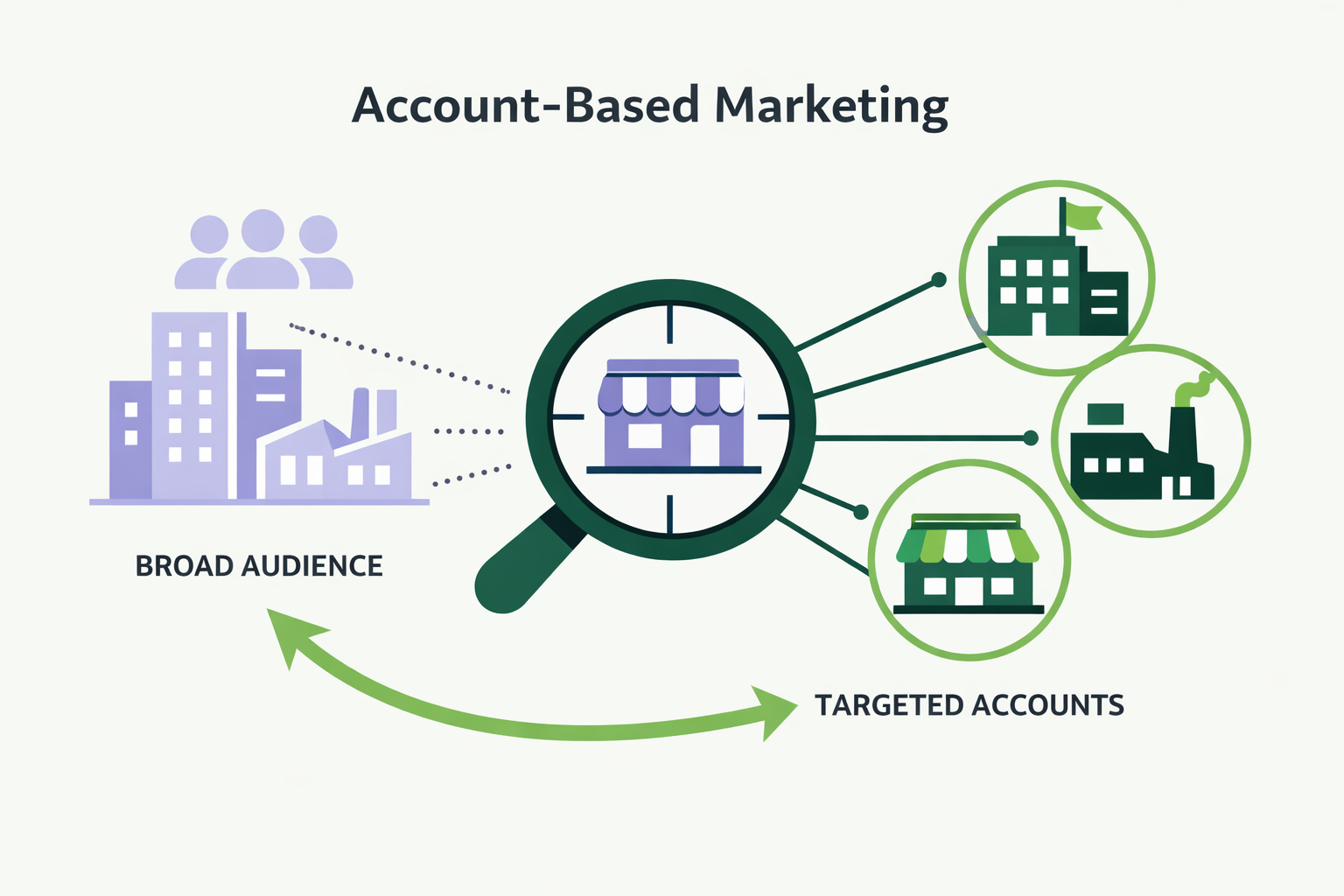 I stedet for at arbejde med mange ukvalificerede leads, arbejder man med en defineret liste af virksomheder og tilpasser sin kommunikation til dem.